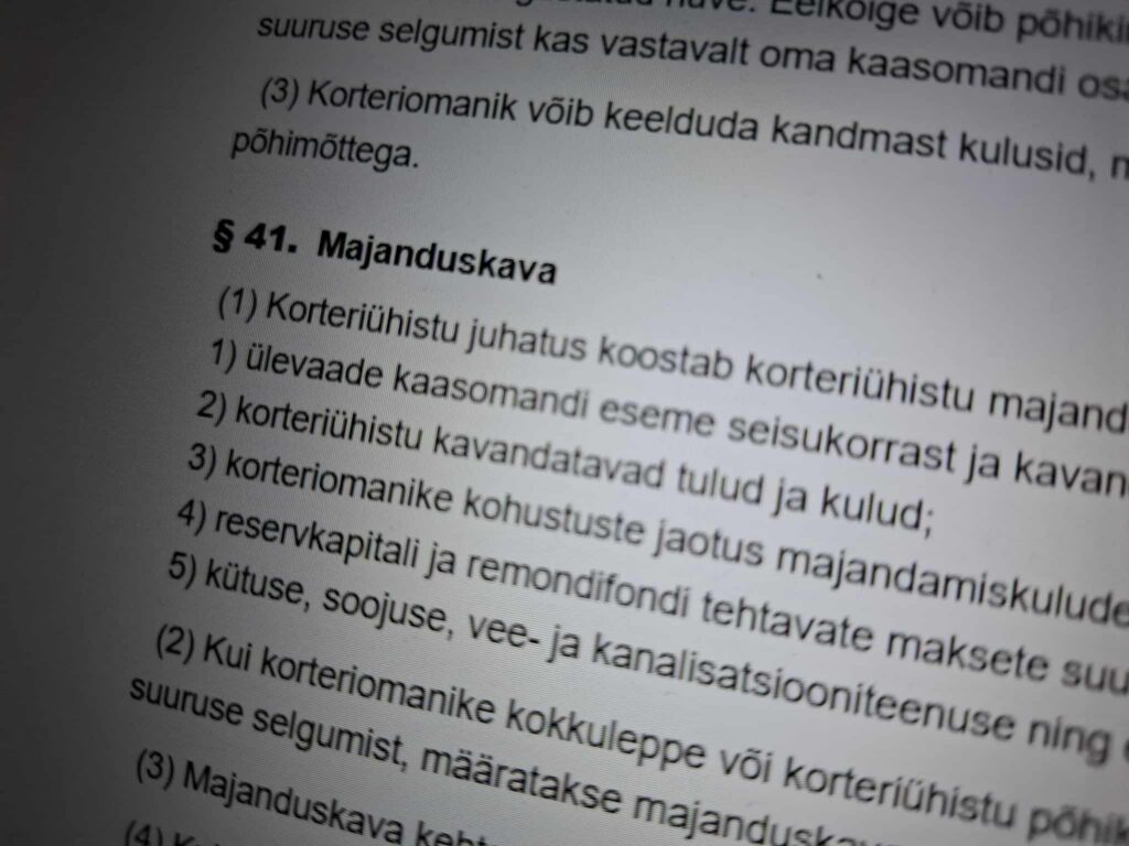 Kas teie korteriühistu juhatus on igaks majandusaastaks koostanud majanduskava? Korteriomandi- ja korteriühistuseaduse (KrtS) § 40 lg 1 sätestab, et korteriomanikud